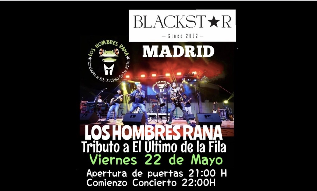 Prepárate para vivir una noche única en Blackstar Madrid con el esperado concierto de "LOS HOMBRES RANA". Este evento exclusivo trae lo mejor de la música en vivo en Madrid para que disfrutes de una fiesta llena de energía y grandes actuaciones.